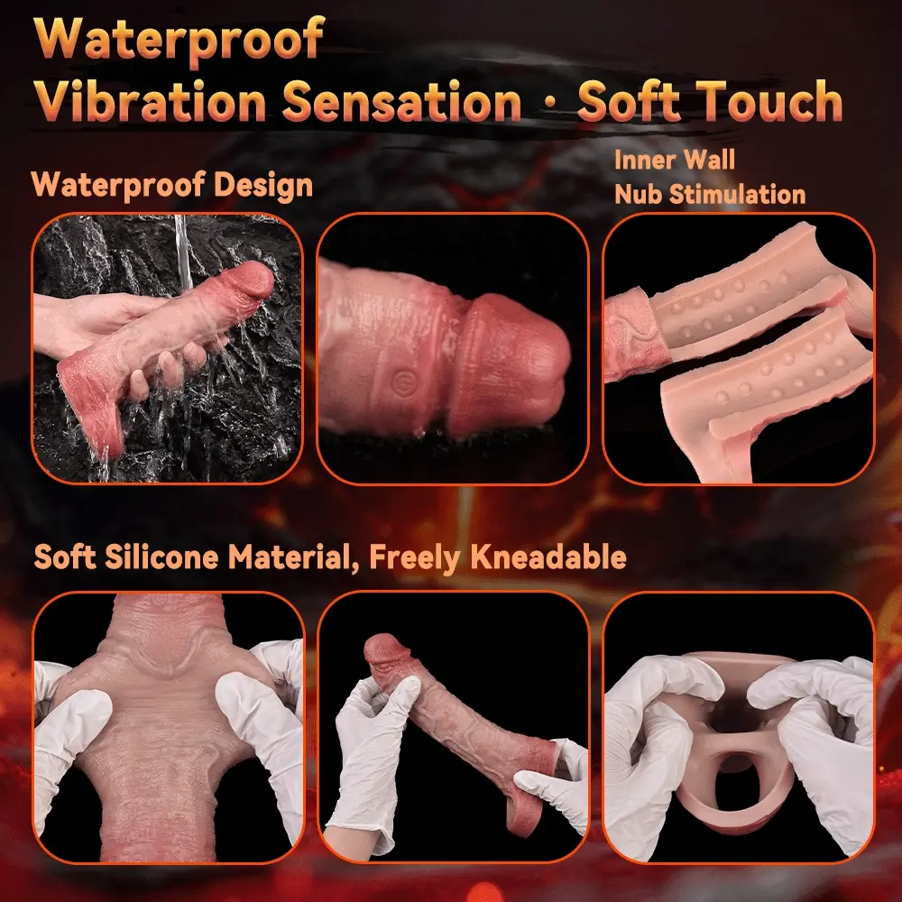 Increase the length of your penis by 2.44 inch with our Dick Extension Sleeve. Made of soft and elastic silicone material, it fits snugly and comfortably, enhancing pleasure for both partners. Plus, its soft glans minimizes discomfort. Improve your performance and prevent premature ejaculation.