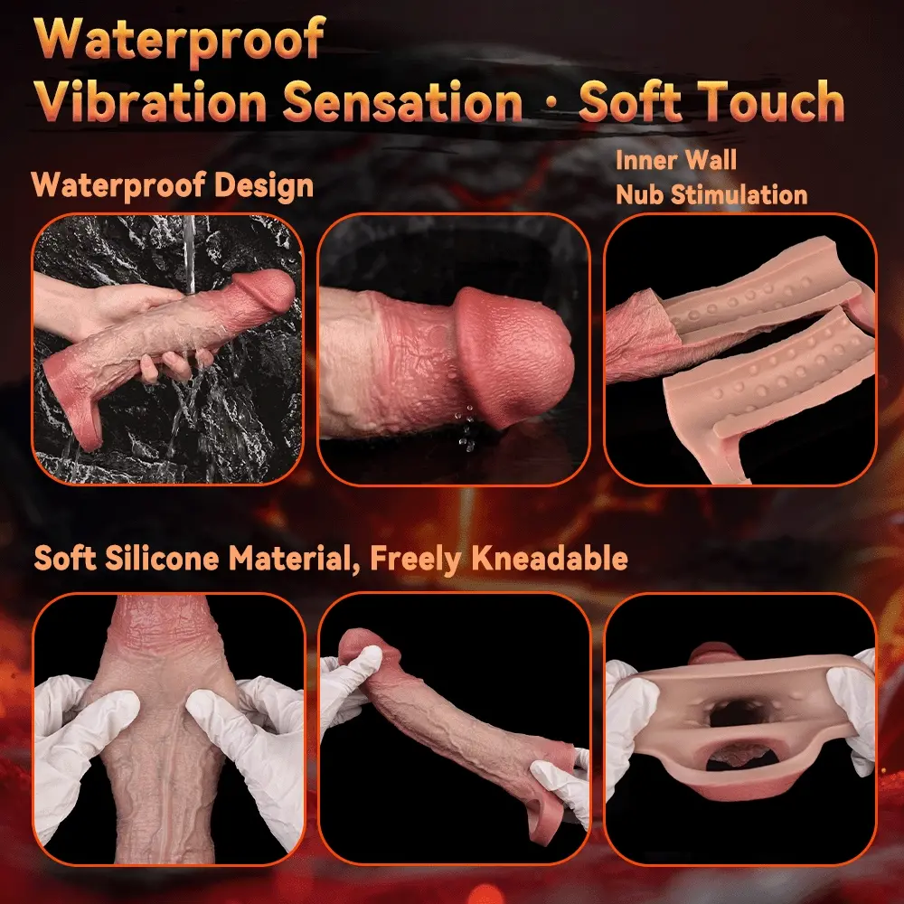 9.09"×2.24" Realistic Soft Penis Sleeve with 10 Vibration Modes